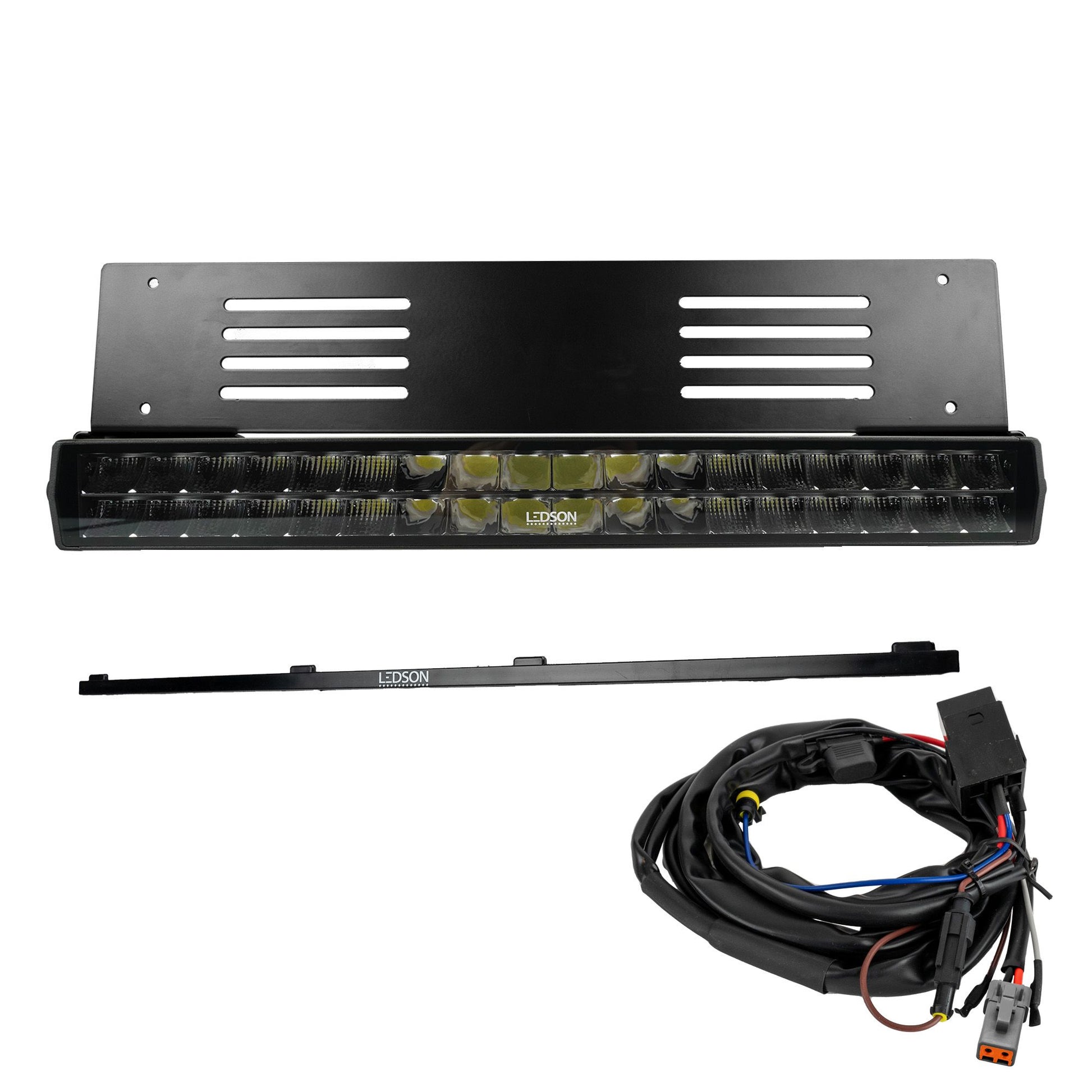 Mukana tulevat: Alfa 20" LED-palkki, sivukiinnikkeet, liukukiinnikkeet (pysty- / riippuva), pultit ja ruuvit kiinnitykseen, DT-liitin, asennusohjeet.