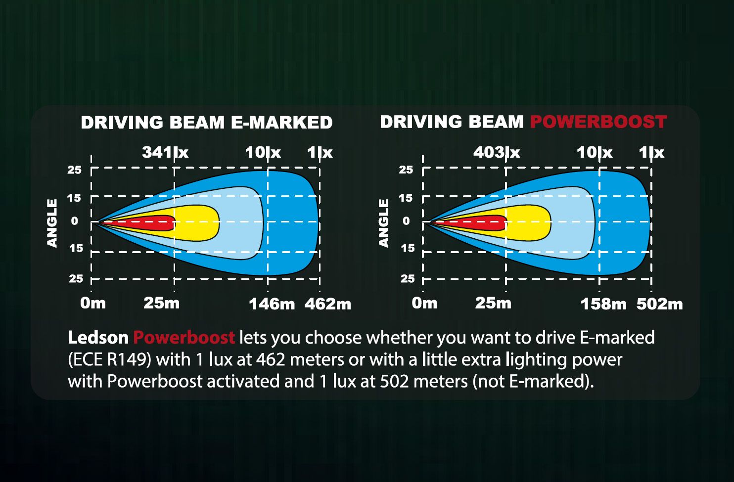 Kantama: 462 m (1 luks), Teho-boost: 502 m (1 luks)
